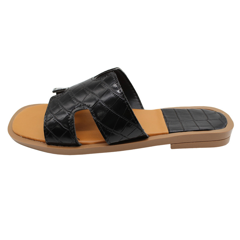 صندل زنانه نیکتا مدل 5-3100 طرح هرمس کد 1293 مشکی توسط برند خوشنام و خوب ایرانی نیکتا طراحی و تولید شده است. زیره این صندل از جنس PU و رویه آن از جنس چرم مصنوعی با طرح و نقوش برجسته است. مدل رویه برگرفته از مدل هرمس میباشد.