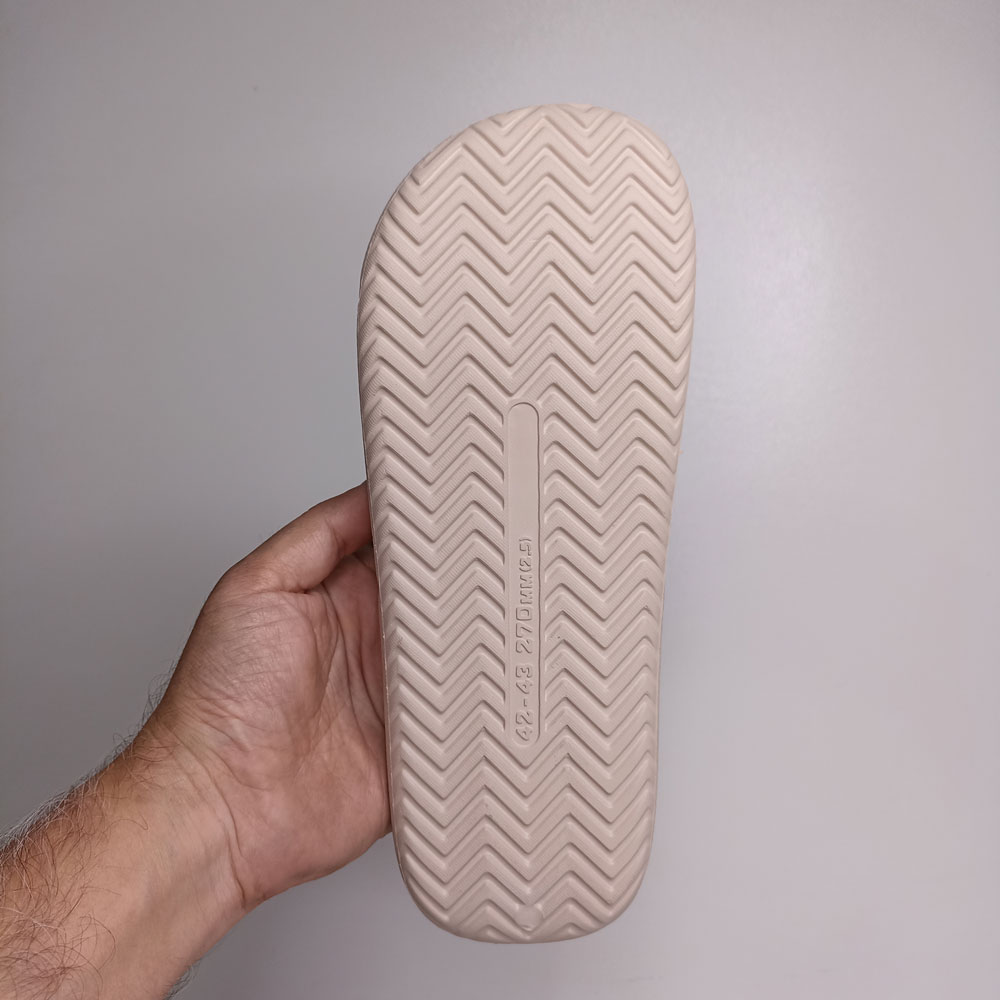 وزن یک لنگه از این دمپایی در حدود 135 گرم است و ضخامت زیره حدود 2 سانتیمتر میباشد.