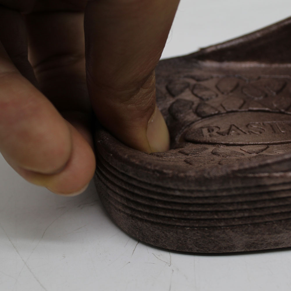 زیره دمپایی جلوبسته البرز نسبتا ضخیم و نرم میباشد. رویه دمپایی بلند بوده و قسمت زیادی از روی پا را پوشش میدهد و این یک پارامتر مثبت در طراحی این دمپایی محسوب میشود.