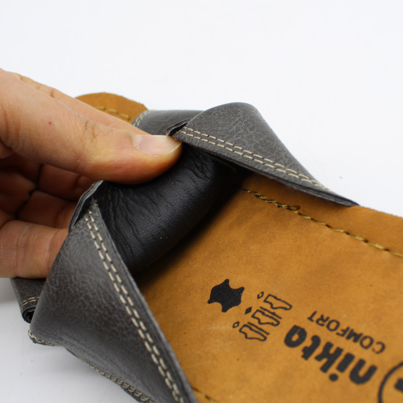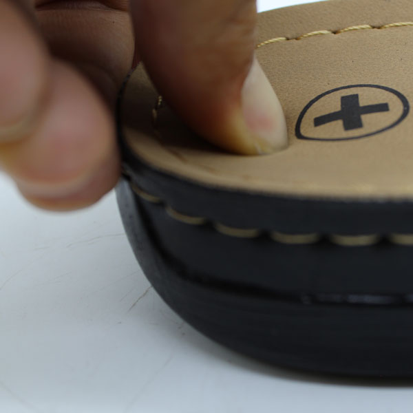 قسمت رویه چرمی دمپایی دوردوخت بوده و به صورت چسب و دوخت کاملا به قسمت زیره متصل شده است.