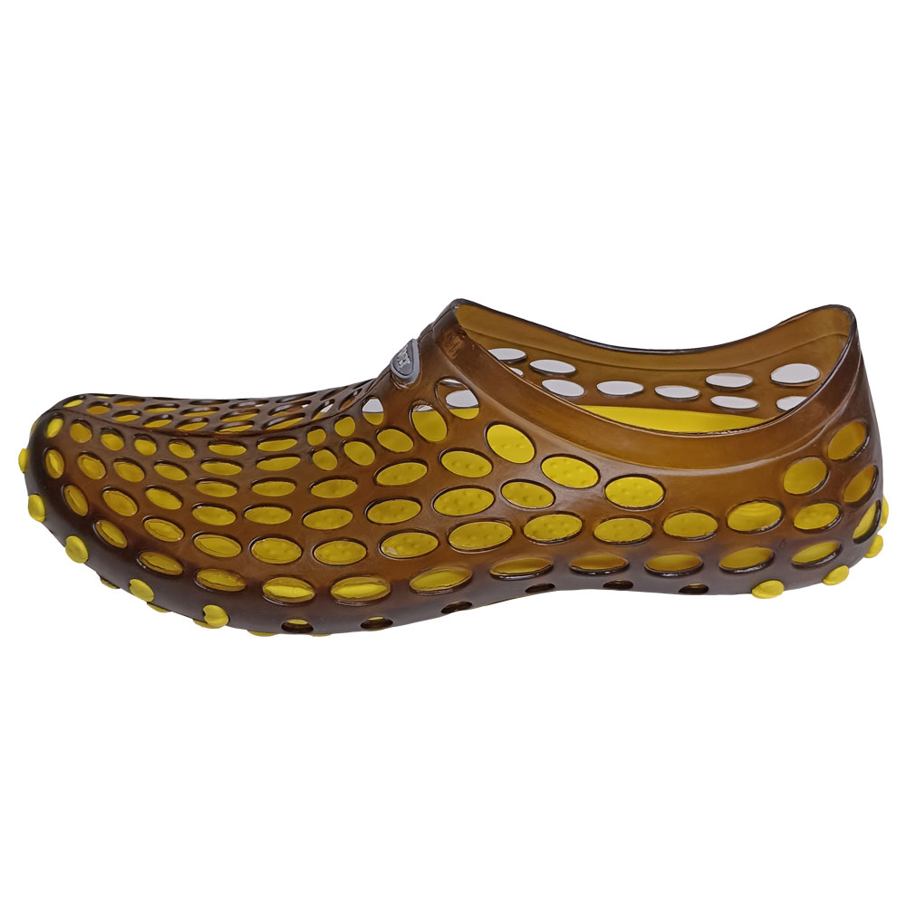 کفش ساحلی میلان برند پاپا کد 1667 گزینه ای عالی برای غواصی و ورزش های آبی و آبنوردی و طبیعت گردی و شنا در آب های آزاد است. جنس قسمت بیرونی این محصول از PVC نرم و منعطف به صورت سوراخدار است که سوراخ های کنار و روی بدنه کار گردش هوا و خروج آب از داخل کفش را انجام میدهند و قسمت کف داخلی هم یک پد طبی دارای برجستگی از جنس EVA است که علاوه بر ایجاد راحتی و نرمی برای کاربر، مانع از لغزندگی بر روی سطوح میشود.