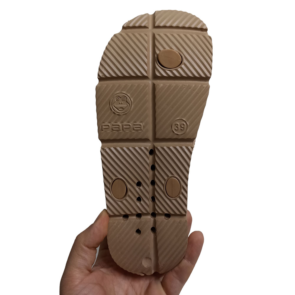 صندل لاانگشتی لژدار زنانه پاپا مدل هیون کد 1617 دارای لژ 5.5 سانتی در قسمت پاشنه است و کف بسیار نرمی دارد. رویه این کار مدل لاانگشتی است و از متریال پی وی سی با کیفیت تولید شده است.