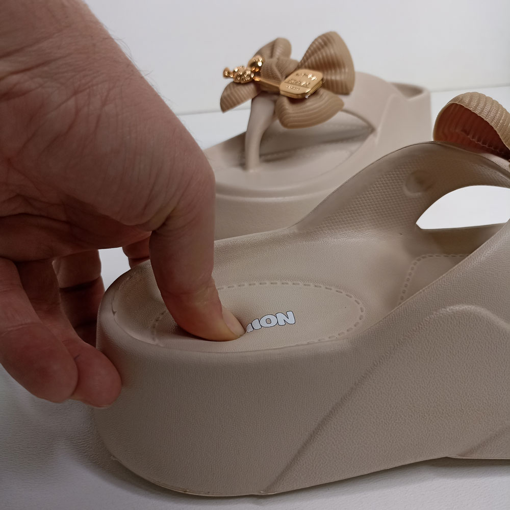 یکی از ویژگی های بارز این دمپایی ارتفاع حدود 5 سانتیمتری لژ آن در قسمت پاشنه است و جلوه بلندتری از قامت شما به نمایش میگذارد.