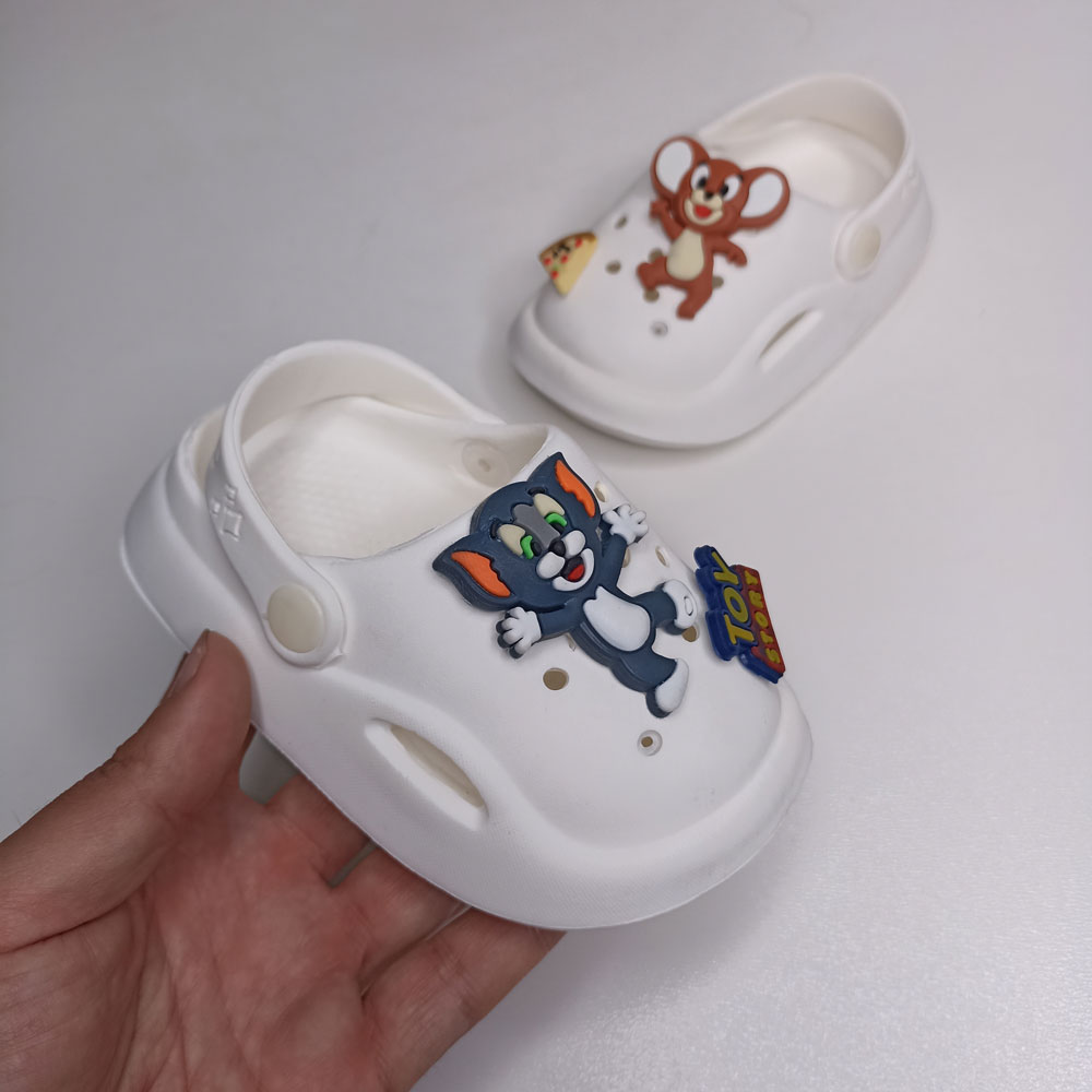 رویه این دمپایی کراکس بچگانه با عروسک تام وجری برجسته تزئین شده و جلوه بسیار جذابی دارد.