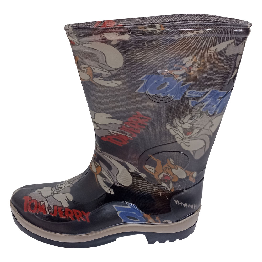 چکمه دخترانه مدل تام و جری کد 8-1487 مشکی از متریال درجه یک PVC نرم و منعطف تولید شده و گزینه بسیار مناسبی برای استفاده در روزهای بارانی و برفی و همچنین استفاده در برنامه های طبیعت گردی و کمپینگ و استفاده در باغ و باغچه میباشد.