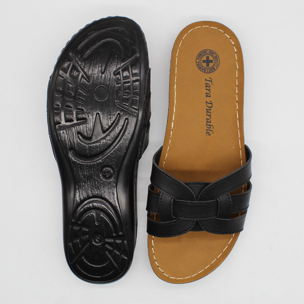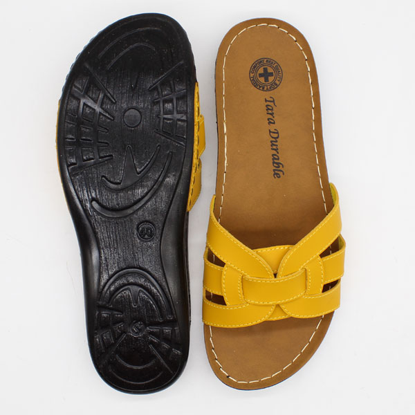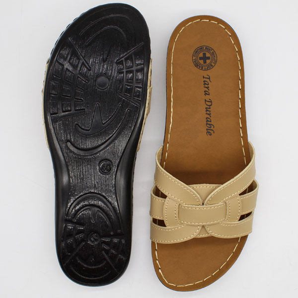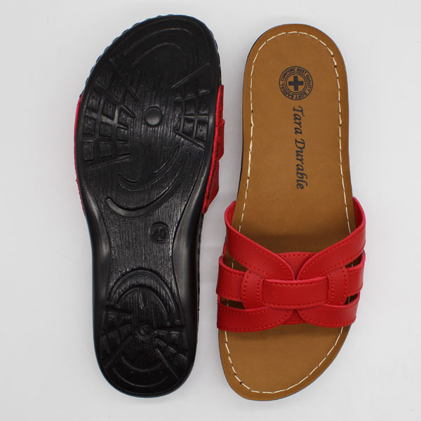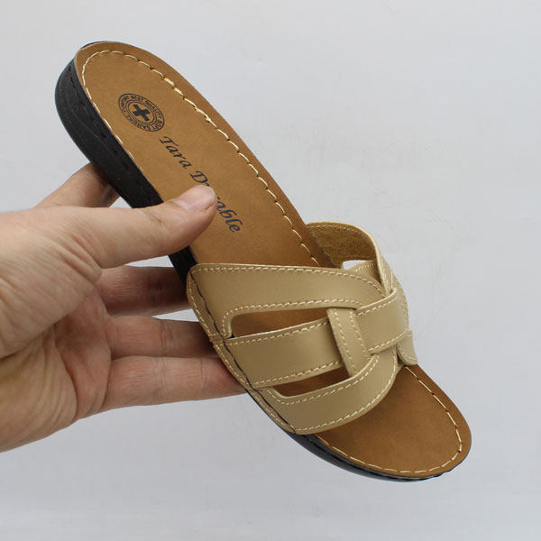 صندل روفرشی طبی زنانه تینا کد 1213 دارای زیره ای از جنس PU و کف طبی است که در قسمت کف از پارچه پشت چرم کار استفاده شده است.